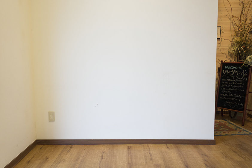 角形オープンフレームを壁に立て掛け、空間に広がりを。