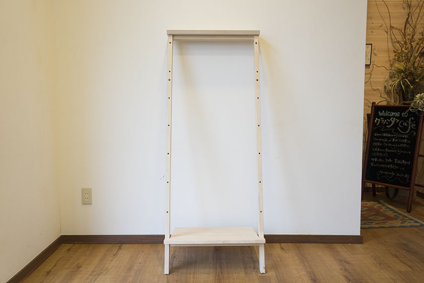 壁を傷つけることなく、棚とハンガーが利用できます。